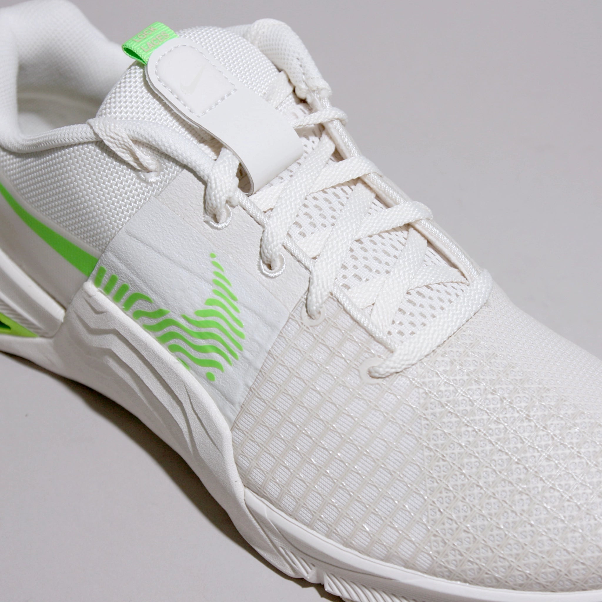 - Tab locks down the laces with a hook-and-loop closure to help keep them out of the way.