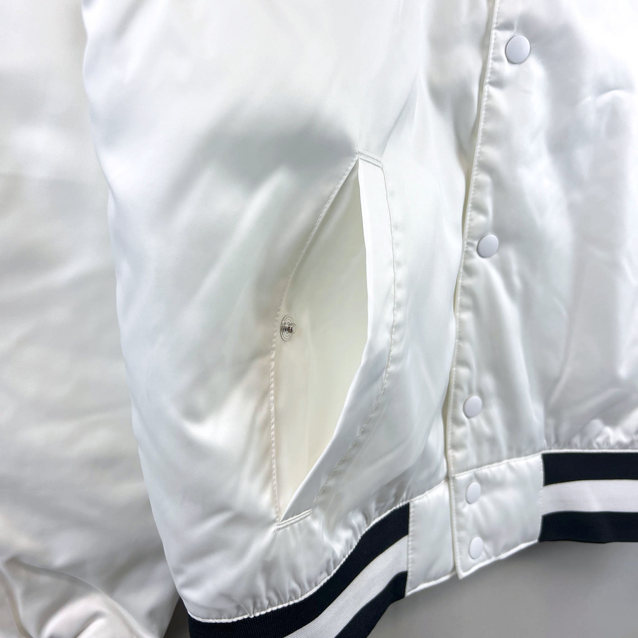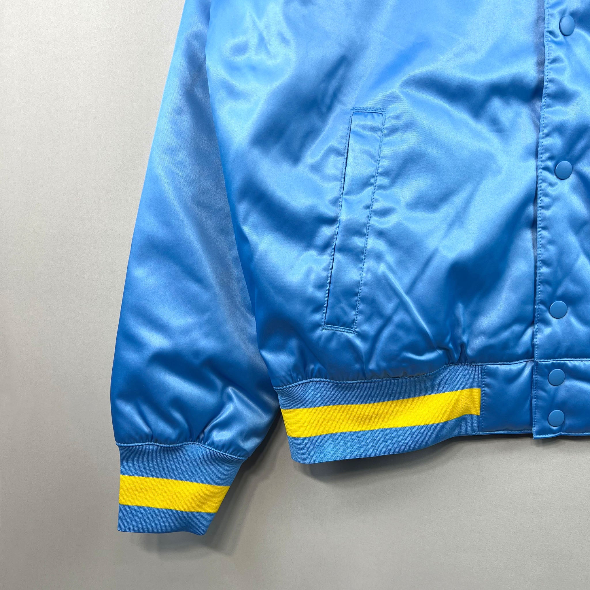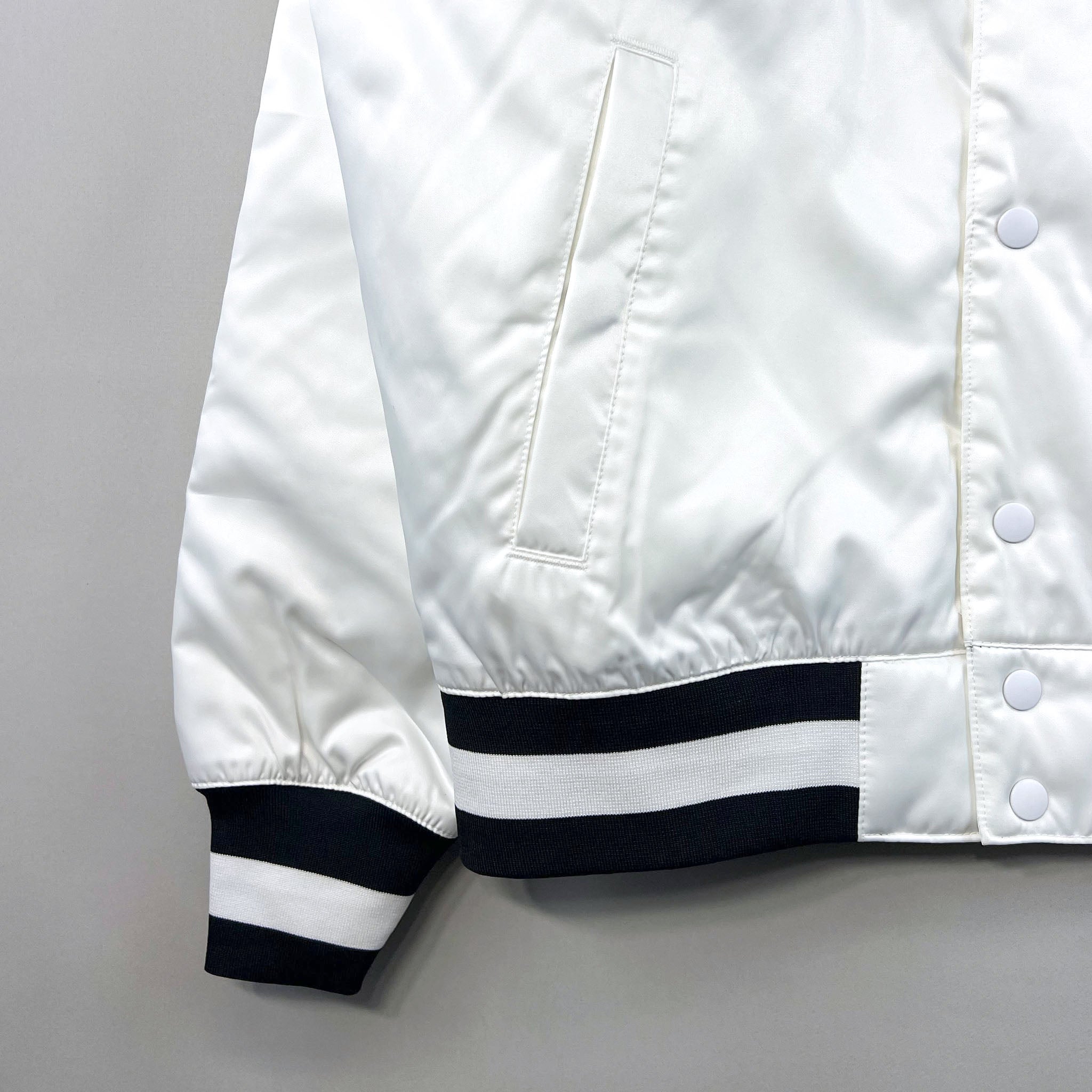 Celebrate the crossover of skate and court culture with the Nike SB x NBA Bomber Jacket. Featuring an oversized NBA logo on the chest and Nike SB embroidery on the sleeve, this jacket makes a bold statement wherever you go. The classic bomber silhouette includes a full button closure and dual front pockets, blending heritage styling with everyday function. Made from durable polyester, it’s a go-to piece for layered comfort and standout streetwear.