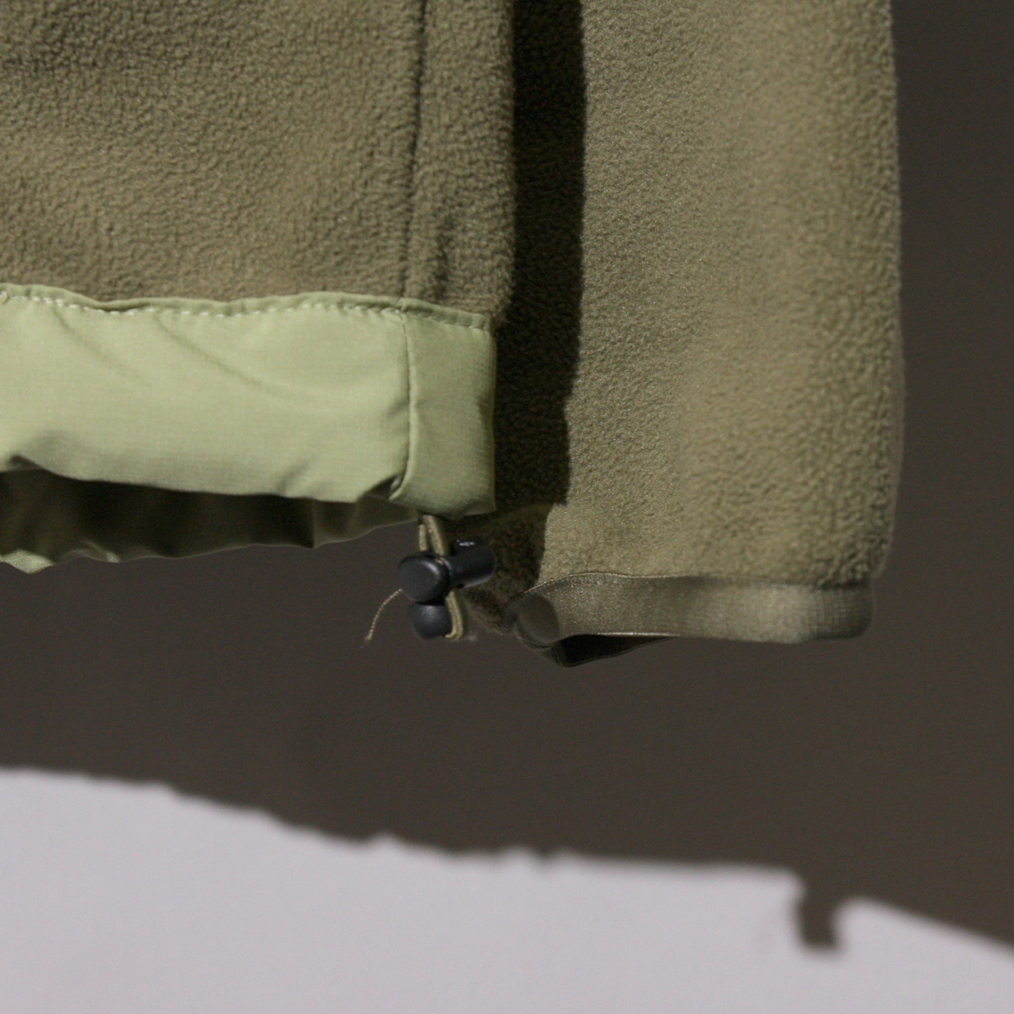 - Brushed fleece fabric feels soft on your skin and brings lightweight warmth, while the bungee cord on the hem lets you adjust the fit to keep the cool air out