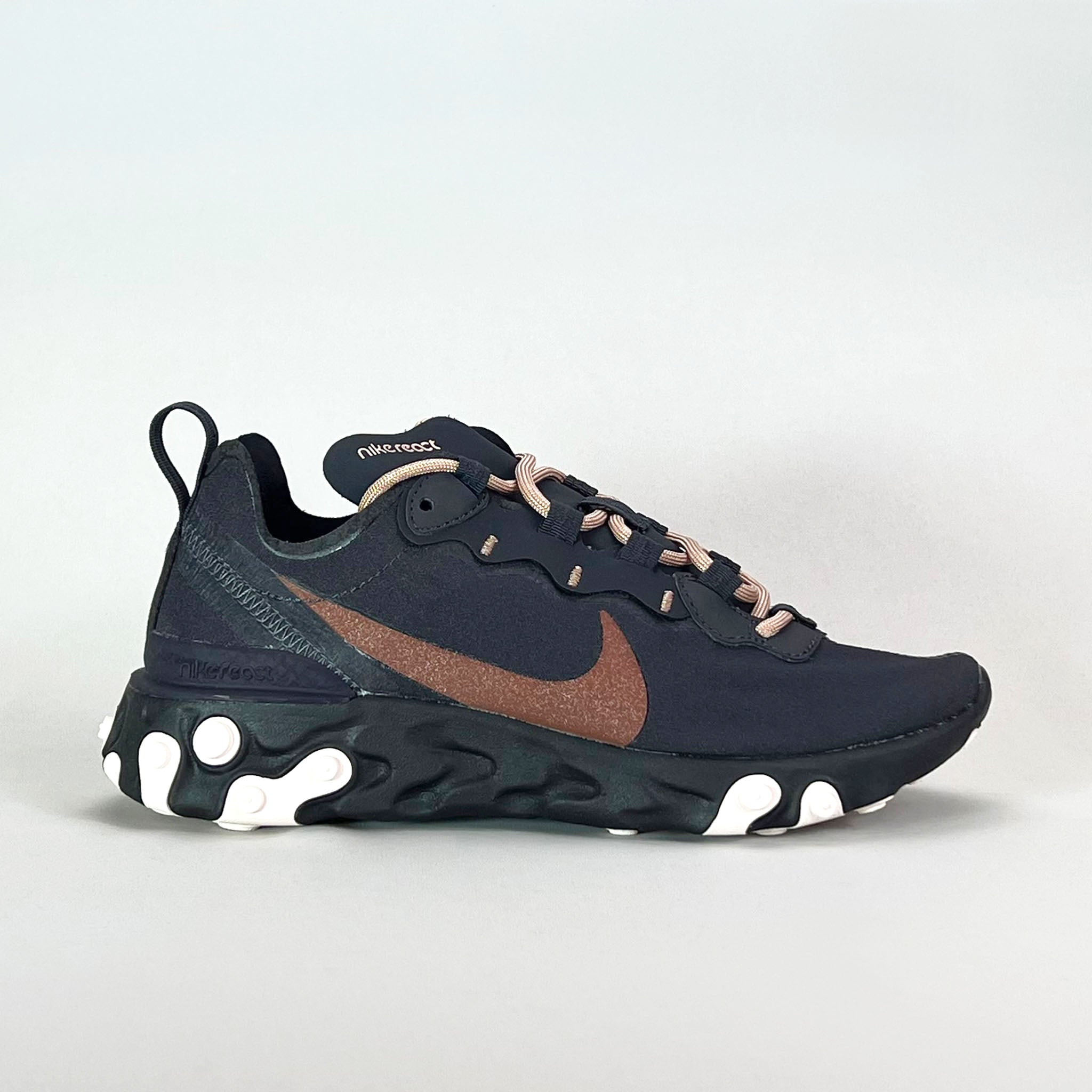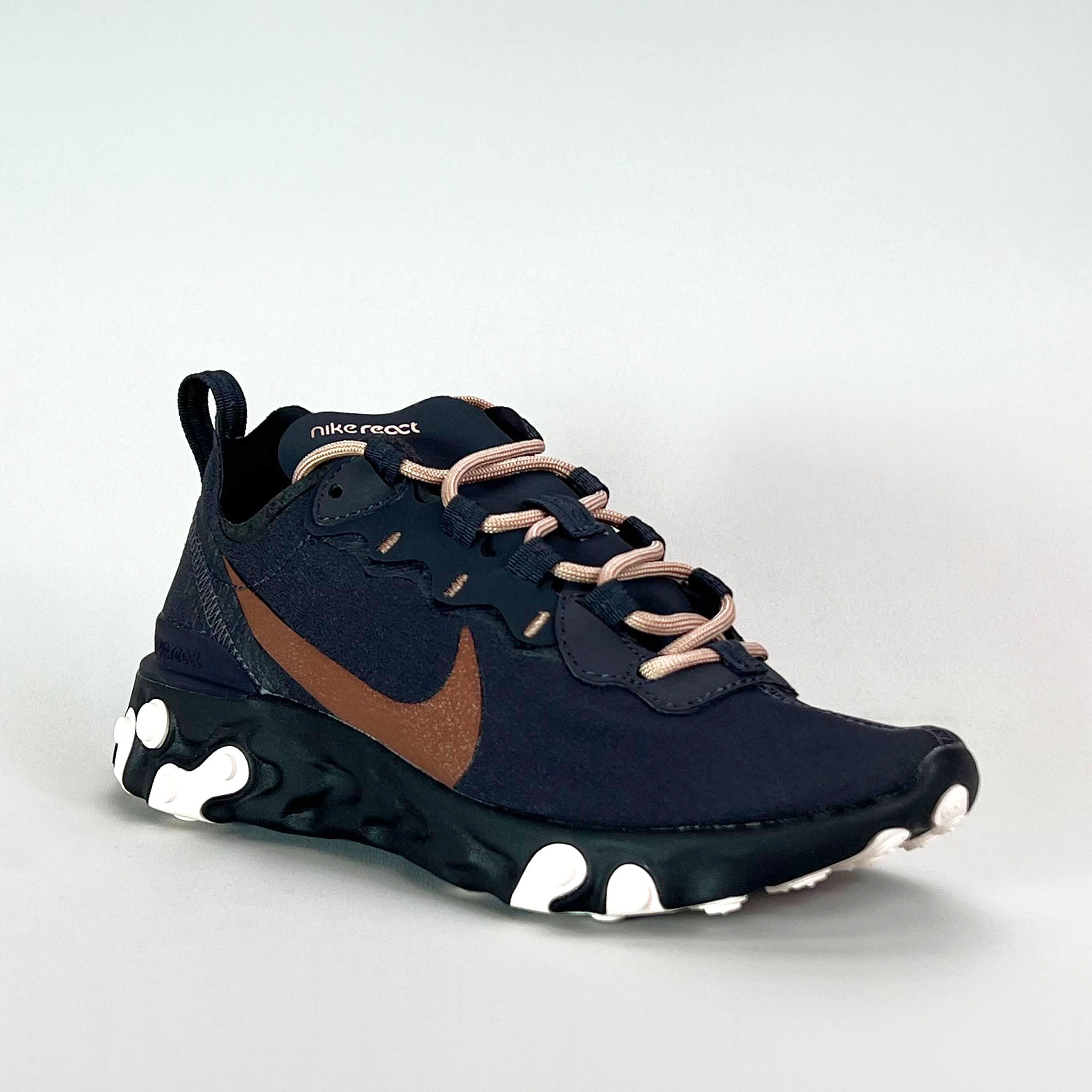 Blending modern design with all-day comfort, the Nike Women's React Element 55 features Nike React technology for a smooth, responsive ride. The lightweight textile and synthetic upper provide breathability and support, while the heel pull tab ensures easy on and off. Whether you're on the move or keeping it casual, this sneaker delivers versatility with a sleek, sporty edge.